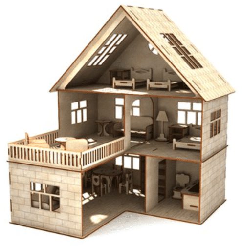 Descubre nuestro vector descargable de diseño de casa de muñecas de tres niveles 🏠✨. Ideal para dar rienda suelta a tu creatividad y herramientas de corte láser. Con terrazas y detalles únicos, este diseño te permitirá crear una casa de muñecas encantadora. ¡No te lo pierdas! 📥