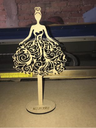 Descubre nuestro vector descargable para diseñar un hermoso centro de mesa calado 🎉. Presenta una elegante figura de mujer con vestido de quinceañera, ideal para tus celebraciones. Además, cuenta con una base personalizable que garantiza que se mantenga en pie. ¡Haz tu evento inolvidable con este diseño único! 🌟